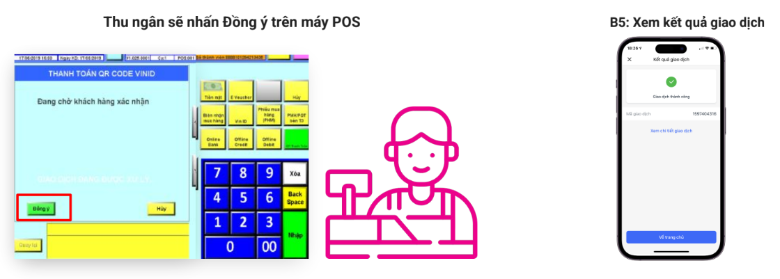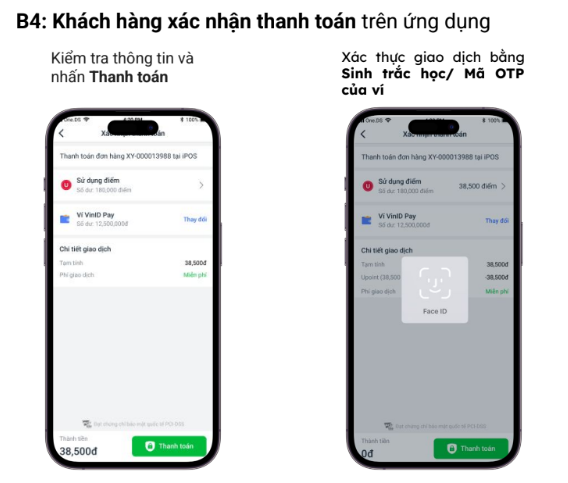 5.1. Cách thức thanh toán: Thu ngân quét mã Barcode tại màn hình thanh toán của app VinID trên điện thoại khách hàng.